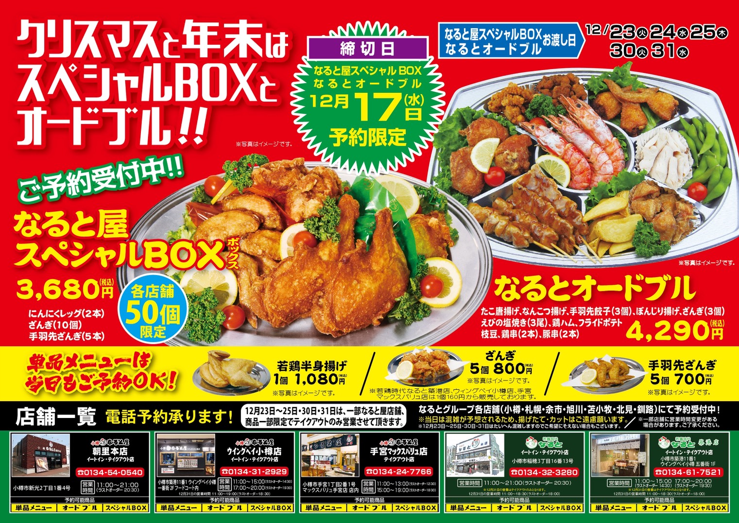 クリスマス・年末限定「なると屋スペシャルBOX」および「なるとオードブル」の予約受付を開始いたしました!